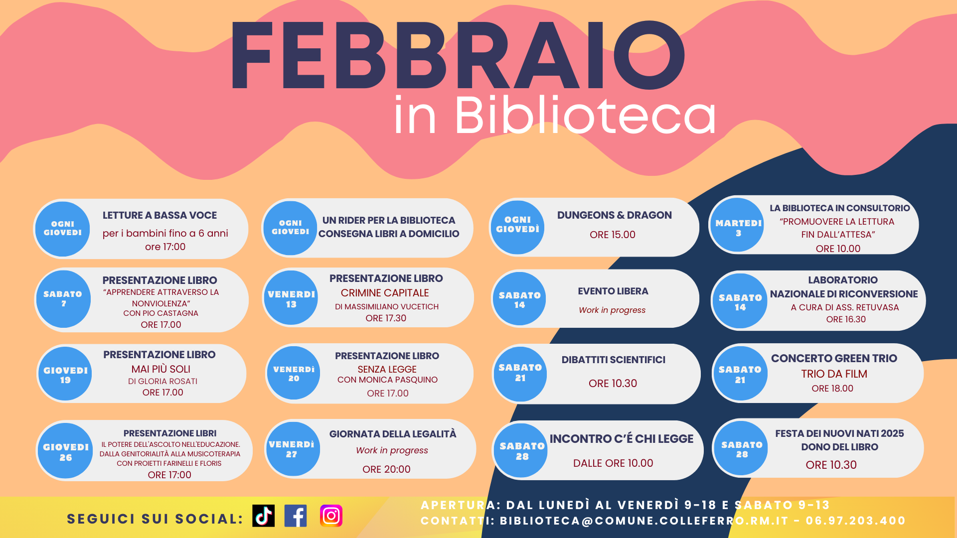 Per informazioni e dettagli sul programma è possibile contattare direttamente la biblioteca. Vi aspettiamo tra i nostri scaffali: passate a trovarci!