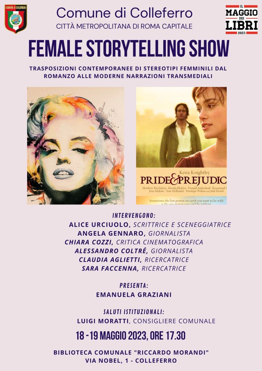 Appuntamento il 18 e 19 maggio 2023 alle ore 17:30 con "FEMALE STORYTELLING SHOW. Trasposizioni contemporanee di stereotipi femminili dal romanzo alle moderne narrazioni transmediali."