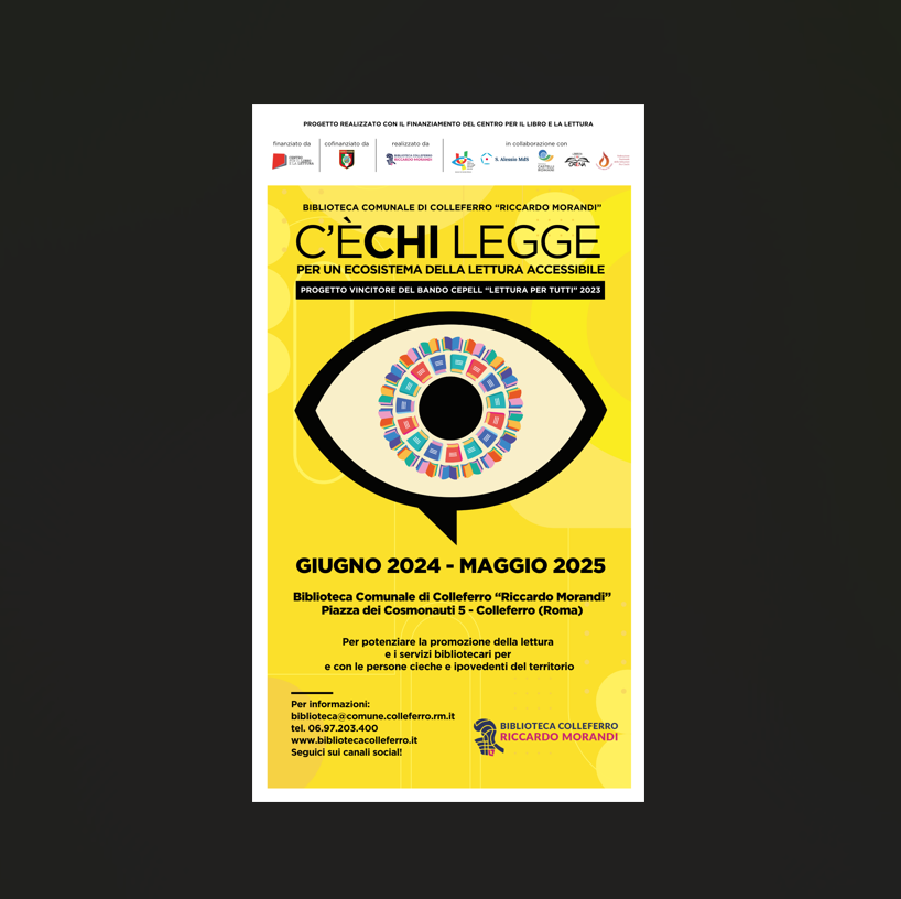 Al centro del progetto "C’èchi legge" ci sono i cittadini ciechi e ipovedenti del Comune di Colleferro e dei territori limitrofi, la loro abitudine alla lettura, i servizi e le risorse accessibili nella quotidianità. Non utenti ma parte attiva del processo di ampliamento dei servizi di lettura territoriali.