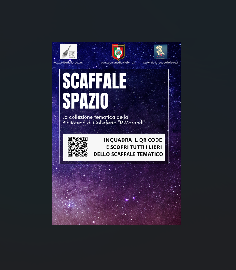 Questo scaffale tematico nasce con l’intento di valorizzare il forte legame che la nostra città, Colleferro, ha con lo studio e il lavoro sullo spazio. Colleferro, infatti, è da anni un punto di riferimento nel settore aerospaziale, grazie alla presenza di un’importante azienda che opera in questo campo. Un ulteriore riconoscimento del ruolo della nostra città in ambito spaziale è arrivato nel 2022, quando Colleferro è stata nominata Capitale Europea dello Spazio, un titolo che ha ulteriormente consolidato la sua vocazione scientifica e tecnologica.